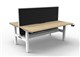 Boost Crank Manual Height Adjustable Back To Back Workstation With Screen - Natural Oak/ White Satin 1500mm W x 1500mm D x 705mm - 1155mm H (Overall) 1500mm W x 750mm D x 705mm - 1155mm H (Per User) Overall Height AFFL including Screen: 1330mm H E0 Rated 25mm T Table Top Finished In Natural Oak With Rigid Edging & 50mm D Scallop Cut Out To Rear Underframe Finished In White Satin Powder Coat Fully Ducted Cable Tray With Punchout For Power & Data To be Fitted To Either External Or Internal Of Frame 1500mm W x 900mm H x 30mm T Pinnable Privacy Screen Finished In Black Fabric With Matching White P/C Extrusion Column Size: 90mm x 60mm Frame Height: 680mm - 1130mm Max Speed: 15mm Per Second ( 10mm Per Full Turn Circle ) Adjustable Leveling Feet Desk Mounting Top Plate Size: 500mm Steel Gauge: 3.0mm, 2.0mm & 1.5mm Used Throughout Additional Items Also Available Include: Cable Tray Bridge ( B2-B2BBR ) Flexible Cable Snake ( B2-CBSNAKE ) 10 Year Warranty