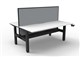 Boost Crank Manual Height Adjustable Back To Back Workstation With Screen - Natural White/ Black Satin 1500mm W x 1500mm D x 705mm - 1155mm H (Overall) 1500mm W x 750mm D x 705mm - 1155mm H (Per User) Overall Height AFFL including Screen: 1330mm H E0 Rated 25mm T Table Top Finished In Natural White With Rigid Edging & 50mm D Scallop Cut Out To Rear Underframe Finished In Black Satin Powder Coat Fully Ducted Cable Tray With Punchout For Power & Data To be Fitted To Either External Or Internal Of Frame 1500mm W x 900mm H x 30mm T Pinnable Privacy Screen Finished In Grey Fabric With Matching Black P/C Extrusion Column Size: 90mm x 60mm Frame Height: 680mm - 1130mm Max Speed: 15mm Per Second ( 10mm Per Full Turn Circle ) Adjustable Leveling Feet Desk Mounting Top Plate Size: 500mm Steel Gauge: 3.0mm, 2.0mm & 1.5mm Used Throughout Additional Items Also Available Include: Cable Tray Bridge ( B2-B2BBR ) Flexible Cable Snake ( B2-CBSNAKE ) 10 Year Warranty