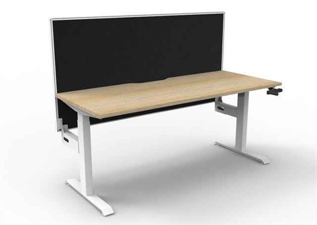 Boost Crank Manual Height Adjustable Single Sided Workstation With Screen - Natural Oak/ White Satin 1500mm W x 750mm D x 705mm - 1155mm H Overall Height AFFL including Screen: 1330mm H E0 Rated 25mm T Table Top Finished In Natural Oak With Rigid Edging & 50mm D Scallop Cut Out To Rear Underframe Finished In White Satin Powder Coat 1500mm W x 900mm H x 30mm T Pinnable Privacy Screen Finished In Black Fabric With Matching White P/C Extrusion Column Size: 90mm x 60mm Frame Height: 680mm - 1130mm Max Speed: 15mm Per Second ( 10mm Per Full Turn Circle ) Adjustable Leveling Feet Foot Size: 700mm Desk Mounting Top Plate Size: 500mm Steel Gauge: 3.0mm, 2.0mm & 1.5mm Used Throughout Additional Items Also Available Include: Fully Ducted Cable Tray Complete With Power & Data Punchouts Internal & External To Tray ( B2-SSCT15 ) Cable Tray Bridge ( B2-SSBR ) Flexible Cable Snake ( B2-CBSNAKE ) 10 Year Warranty