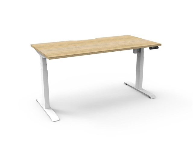 Boost Light Single Sided Workstation - Natural Oak/ White Satin 1500mm W x 750mm D x 620mm - 1270mm H E0 Rated 25mm T Table Top Finished In Natural Oak With Rigid Edging & 50mm D Scallop Cut Out To Rear Single Motor Underframe Finished In White Satin Powder Coat Digital Control Panel With 3 Pre-Set Positions, LED Display Panel, Keypad Safety Lock & Reminder Alarm Setting Anti- Collision & Anti-Tilt Technology Column Size: 90mm x 60mm Height Range: 595mm-1245mm ( Without Table Top ) Lifting Capacity: 80 Kg Max Speed: 25mm Per Second Adjustable Leveling Feet Foot Size: 700mm Desk Mounting Top Plate Size: 500mm Steel Gauge: 3.0mm, 2.0mm & 1.5mm Used Throughout Noise Emission: <50DB Surge Immunity: 1kV(L1 to L2) / 2kV(L1,L2 To PE) ESD Protection: +-4.0kV ( Contact Discharge )/+-8.0kV ( Air Discharge ) Input Power: 110-240V Transformer Power:58W (.03W On Standby ) SAA and C Tick Certification Additional Items Also Available Include: Fully Ducted Cable Tray Complete With Power & Data Punchouts Internal & External To Tray ( B2-SSCT15 ) 30mm T Pinnable Privacy Screen ( SHS159 + B2-SSARM + B2-SBRAC ) Cable Tray Bridge ( B2-SSBR ) Flexible Cable Snake ( B2-CBSNAKE ) Battery Pack ( B2-BATT ) 10 Year Warranty