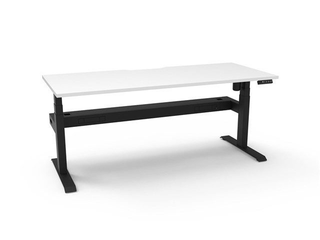Boost Light Single Sided Workstation With Cable Tray - Natural White/ Black Satin 1200mm W x 750mm D x 620mm - 1270mm H E0 Rated 25mm T Table Top Finished In Natural White With Rigid Edging & 50mm D Scallop Cut Out To Rear Single Motor Underframe Finished In Black Satin Powder Coat Fully Ducted Cable Tray With Punchout For Power & Data To be Fitted To Either External Or Internal Of Frame Digital Control Panel With 3 Pre-Set Positions, LED Display Panel, Keypad Safety Lock & Reminder Alarm Setting Anti- Collision & Anti-Tilt Technology Column Size: 90mm x 60mm Height Range: 595mm-1245mm ( Without Table Top ) Lifting Capacity: 80 Kg Max Speed: 25mm Per Second Adjustable Leveling Feet Foot Size: 700mm Desk Mounting Top Plate Size: 500mm Steel Gauge: 3.0mm, 2.0mm & 1.5mm Used Throughout Noise Emission: <50DB Surge Immunity: 1kV(L1 to L2) / 2kV(L1,L2 To PE) ESD Protection: +-4.0kV ( Contact Discharge )/+-8.0kV ( Air Discharge ) Input Power: 110-240V Transformer Power:58W (.03W On Standby ) SAA and C Tick Certification Additional Items Also Available Include: 30mm T Pinnable Privacy Screen ( SHS129 + B2-SSARM + B2-SBRAC ) Cable Tray Bridge ( B2-SSBR ) Flexible Cable Snake ( B2-CBSNAKE ) Battery Pack ( B2-BATT ) 10 Year Warranty
