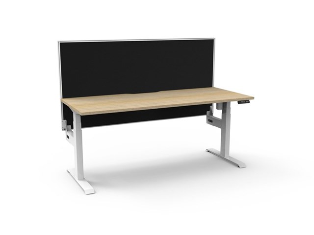 Boost Light Single Sided Workstation With Screen - Natural Oak/ White Satin 1200mm W x 750mm D x 620mm - 1270mm H Overall Height AFFL including Screen: 1330mm H E0 Rated 25mm T Table Top Finished In Natural Oak With Rigid Edging & 50mm D Scallop Cut Out To Rear Single Motor Underframe Finished In White Satin Powder Coat 1200mm W x 900mm H x 30mm T Pinnable Privacy Screen Finished In Black Fabric With Matching White P/C Extrusion Digital Control Panel With 3 Pre-Set Positions, LED Display Panel, Keypad Safety Lock & Reminder Alarm Setting Anti- Collision & Anti-Tilt Technology Column Size: 90mm x 60mm Height Range: 595mm-1245mm ( Without Table Top ) Lifting Capacity: 80 Kg Max Speed: 25mm Per Second Adjustable Leveling Feet Foot Size: 700mm Desk Mounting Top Plate Size: 500mm Steel Gauge: 3.0mm, 2.0mm & 1.5mm Used Throughout Noise Emission: <50DB Surge Immunity: 1kV(L1 to L2) / 2kV(L1,L2 To PE) ESD Protection: +-4.0kV ( Contact Discharge )/+-8.0kV ( Air Discharge ) Input Power: 110-240V Transformer Power:58W (.03W On Standby ) SAA and C Tick Certification Additional Items Also Available Include: Fully Ducted Cable Tray Complete With Power & Data Punchouts Internal & External To Tray ( B2-SSCT12 ) Cable Tray Bridge ( B2-SSBR ) Flexible Cable Snake ( B2-CBSNAKE ) Battery Pack ( B2-BATT ) 10 Year Warranty