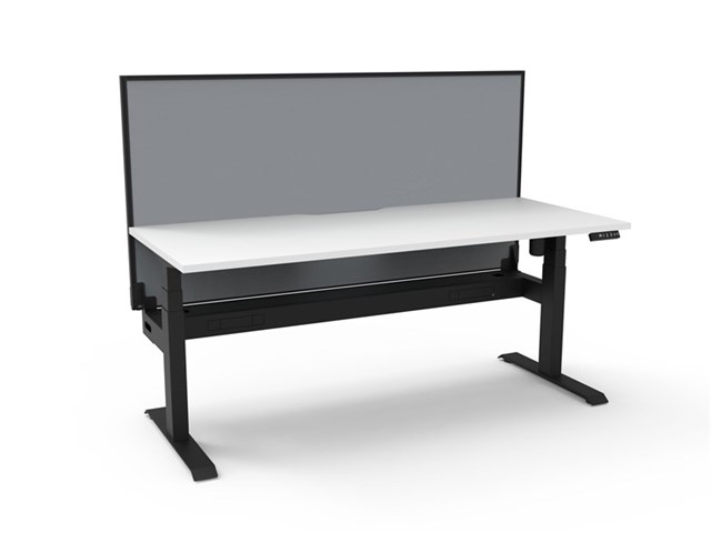 Boost Light Single Sided Workstation With Screen - Natural White/ Black Satin 1800mm W x 750mm D x 620mm - 1270mm H Overall Height AFFL including Screen: 1330mm H E0 Rated 25mm T Table Top Finished In Natural White With Rigid Edging & 50mm D Scallop Cut Out To Rear Single Motor Underframe Finished In Black Satin Powder Coat Fully Ducted Cable Tray With Punchout For Power & Data To be Fitted To Either External Or Internal Of Frame 1800mm W x 900mm H x 30mm T Pinnable Privacy Screen Finished In Grey Fabric With Matching Black P/C Extrusion Digital Control Panel With 3 Pre-Set Positions, LED Display Panel, Keypad Safety Lock & Reminder Alarm Setting Anti- Collision & Anti-Tilt Technology Column Size: 90mm x 60mm Height Range: 595mm-1245mm ( Without Table Top ) Lifting Capacity: 80 Kg Max Speed: 25mm Per Second Adjustable Leveling Feet Foot Size: 700mm Desk Mounting Top Plate Size: 500mm Steel Gauge: 3.0mm, 2.0mm & 1.5mm Used Throughout Noise Emission: <50DB Surge Immunity: 1kV(L1 to L2) / 2kV(L1,L2 To PE) ESD Protection: +-4.0kV ( Contact Discharge )/+-8.0kV ( Air Discharge ) Input Power: 110-240V Transformer Power:58W (.03W On Standby ) SAA and C Tick Certification Additional Items Also Available Include: Cable Tray Bridge ( B2-SSBR ) Flexible Cable Snake ( B2-CBSNAKE ) Battery Pack ( B2-BATT ) 10 Year Warranty