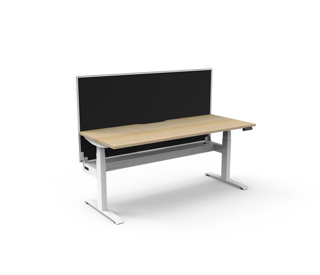 Boost Plus Single Sided Workstation With Screen - Natural Oak/ White Satin 1800mm W x 750mm D x 620mm - 1270mm H Overall Height AFFL including Screen: 1330mm H E0 Rated 25mm T Table Top Finished In Natural Oak With Rigid Edging & 50mm D Scallop Cut Out To Rear Underframe Finished In White Satin Powder Coat Fully Ducted Cable Tray With Punchout For Power & Data To be Fitted To Either External Or Internal Of Frame 1800mm W x 900mm H x 30mm T Pinnable Privacy Screen Finished In Black Fabric With Matching White P/C Extrusion Digital Control Panel With 3 Pre-Set Positions, LED Display Panel, Keypad Safety Lock & Reminder Alarm Setting Anti- Collision & Anti-Tilt Technology Column Size: 90mm x 60mm Height Range: 595mm-1245mm ( Without Table Top ) Lifting Capacity: 120 Kg Max Speed: 38mm Per Second Adjustable Leveling Feet Dual Motor Foot Size: 700mm Desk Mounting Top Plate Size: 500mm Steel Gauge: 3.0mm, 2.0mm & 1.5mm Used Throughout Noise Emission: <50DB Surge Immunity: 1kV(L1 to L2) / 2kV(L1,L2 To PE) ESD Protection: +-4.0kV ( Contact Discharge )/+-8.0kV ( Air Discharge ) Input Power: 110-240V Transformer Power:128W (.03W On Standby ) SAA and C Tick Certification Additional Items Also Available Include: Bluetooth Control Box ( B2-BTCB ) Cable Tray Bridge ( B2-SSBR ) Flexible Cable Snake ( B2-CBSNAKE ) Battery Pack ( B2-BATT ) AFRDI CERTIFIED 10 Year Warranty