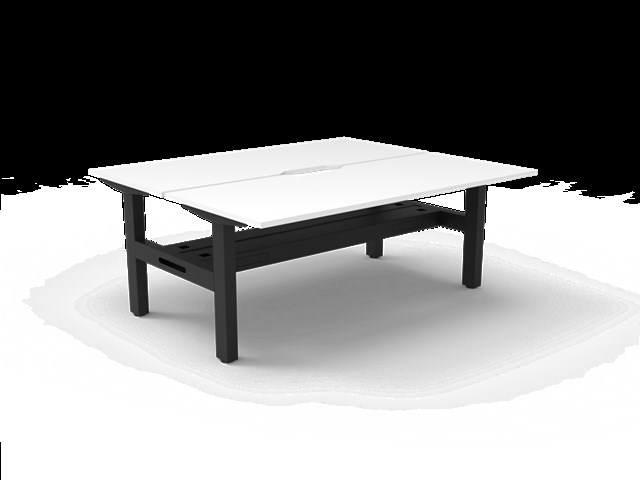 Boost Static Back To Back Workstation - Natural White/ Black Satin 1500mm W x 1500mm D x 730mm H (Overall) 1500mm W x 750mm D x 730mm H (Per User) E0 Rated 25mm T Table Top Finished In Natural White With Rigid Edging & 50mm D Scallop Cut Out To Rear Underframe Finished In Black Satin Powder Coat Fully Ducted Cable Tray With Punchout For Power & Data To be Fitted To Either External Or Internal Of Frame Column Size: 90mm x 60mm Frame Height: 705mm ( Without Table Top ) Adjustable Leveling Feet Desk Mounting Top Plate Size: 500mm Steel Gauge: 3.0mm, 2.0mm & 1.5mm Used Throughout Additional Items Also Available Include: 30mm T Pinnable Privacy Screen ( SHS159 + B2-BBRAC ) Cable Tray Bridge ( B2-B2BBR ) Flexible Cable Snake ( B2-CBSNAKE ) 10 Year Warranty
