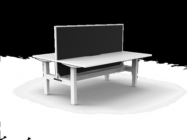 Boost Static Back To Back Workstation With Screen - Natural White/ White Satin 1200mm W x 1500mm D x 730mm H (Overall) 1200mm W x 750mm D x 730mm H (Per User) Overall Height AFFL including Screen: 1330mm H E0 Rated 25mm T Table Top Finished In Natural White With Rigid Edging & 50mm D Scallop Cut Out To Rear Underframe Finished In White Satin Powder Coat Fully Ducted Cable Tray With Punchout For Power & Data To be Fitted To Either External Or Internal Of Frame 1200mm W x 900mm H x 30mm T Pinnable Privacy Screen Finished In Black Fabric With Matching White P/C Extrusion Column Size: 90mm x 60mm Frame Height: 705mm ( Without Table Top ) Adjustable Leveling Feet Desk Mounting Top Plate Size: 500mm Steel Gauge: 3.0mm, 2.0mm & 1.5mm Used Throughout Additional Items Also Available Include: Cable Tray Bridge ( B2-B2BBR ) Flexible Cable Snake ( B2-CBSNAKE ) 10 Year Warranty