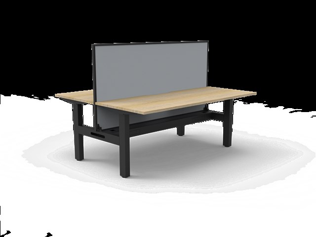 Boost Static Back To Back Workstation With Screen - Natural Oak/ Black Satin 1800mm W x 1500mm D x 730mm H (Overall) 1800mm W x 750mm D x 730mm H (Per User) Overall Height AFFL including Screen: 1330mm H E0 Rated 25mm T Table Top Finished In Natural Oak With Rigid Edging & 50mm D Scallop Cut Out To Rear Underframe Finished In Black Satin Powder Coat Fully Ducted Cable Tray With Punchout For Power & Data To be Fitted To Either External Or Internal Of Frame 1800mm W x 900mm H x 30mm T Pinnable Privacy Screen Finished In Grey Fabric With Matching Black P/C Extrusion Column Size: 90mm x 60mm Frame Height: 705mm ( Without Table Top ) Adjustable Leveling Feet Desk Mounting Top Plate Size: 500mm Steel Gauge: 3.0mm, 2.0mm & 1.5mm Used Throughout Additional Items Also Available Include: Cable Tray Bridge ( B2-B2BBR ) Flexible Cable Snake ( B2-CBSNAKE ) 10 Year Warranty