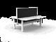 Boost Static Back To Back Workstation With Screen - Natural White/ White Satin 1800mm W x 1500mm D x 730mm H (Overall) 1800mm W x 750mm D x 730mm H (Per User) Overall Height AFFL including Screen: 1330mm H E0 Rated 25mm T Table Top Finished In Natural White With Rigid Edging & 50mm D Scallop Cut Out To Rear Underframe Finished In White Satin Powder Coat Fully Ducted Cable Tray With Punchout For Power & Data To be Fitted To Either External Or Internal Of Frame 1800mm W x 900mm H x 30mm T Pinnable Privacy Screen Finished In Black Fabric With Matching White P/C Extrusion Column Size: 90mm x 60mm Frame Height: 705mm ( Without Table Top ) Adjustable Leveling Feet Desk Mounting Top Plate Size: 500mm Steel Gauge: 3.0mm, 2.0mm & 1.5mm Used Throughout Additional Items Also Available Include: Cable Tray Bridge ( B2-B2BBR ) Flexible Cable Snake ( B2-CBSNAKE ) 10 Year Warranty