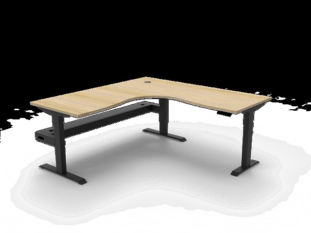 Boost Static Corner Workstation - Natural Oak/ Black Satin 1800mm W x 1800mm W x 750mm D x 730mm H E0 Rated 25mm T Table Top Finished In Natural Oak With Rigid Edging & 80mm Dia Cable Entry With Cover Underframe Finished In Black Satin Powder Coat Fully Ducted Cable Tray With Punchout For Power & Data To be Fitted To Either External Or Internal Of Frame Column Size: 90mm x 60mm Frame Height: 705mm ( Without Table Top ) Adjustable Leveling Feet Foot Size: 700mm Of Main Desk + 500mm For Return Frame Desk Mounting Top Plate Size: 500mm Steel Gauge: 3.0mm, 2.0mm & 1.5mm Used Throughout Additional Items Also Available Include: 30mm T Pinnable Privacy Screen ( SHS189 + B2-SSARM + B2-SBRAC ) Cable Tray Bridge ( B2-SSBR ) Flexible Cable Snake ( B2-CBSNAKE ) 10 Year Warranty