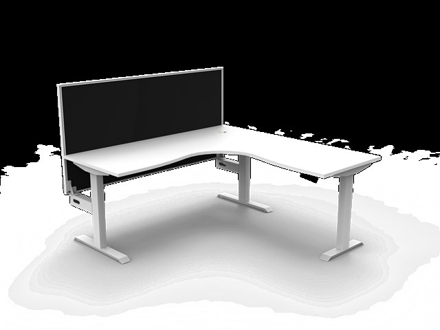 Boost Static Corner Workstation - Natural White/ White Satin 1800mm W x 1500mm W x 750mm D x 730mm H E0 Rated 25mm T Table Top Finished In Natural White With Rigid Edging & 80mm Dia Cable Entry With Cover Underframe Finished In White Satin Powder Coat 1800mm W x 900mm H x 30mm T Pinnable Privacy Screen Finished In Black Fabric With Matching White P/C Extrusion Column Size: 90mm x 60mm Frame Height: 705mm ( Without Table Top ) Adjustable Leveling Feet Foot Size: 700mm Of Main Desk + 500mm For Return Frame Desk Mounting Top Plate Size: 500mm Steel Gauge: 3.0mm, 2.0mm & 1.5mm Used Throughout Additional Items Also Available Include: Fully Ducted Cable Tray Complete With Power & Data Punchouts Internal & External To Tray ( B2-SSCT18 ) Cable Tray Bridge ( B2-SSBR ) Flexible Cable Snake ( B2-CBSNAKE ) 10 Year Warranty