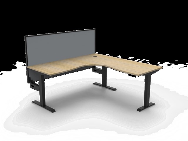 Boost Static Corner Workstation - Natural Oak/ Black Satin 1800mm W x 1800mm W x 750mm D x 730mm H E0 Rated 25mm T Table Top Finished In Natural Oak With Rigid Edging & 80mm Dia Cable Entry With Cover Underframe Finished In Black Satin Powder Coat 1800mm W x 900mm H x 30mm T Pinnable Privacy Screen Finished In Grey Fabric With Matching Black P/C Extrusion Column Size: 90mm x 60mm Frame Height: 705mm ( Without Table Top ) Adjustable Leveling Feet Foot Size: 700mm Of Main Desk + 500mm For Return Frame Desk Mounting Top Plate Size: 500mm Steel Gauge: 3.0mm, 2.0mm & 1.5mm Used Throughout Additional Items Also Available Include: Fully Ducted Cable Tray Complete With Power & Data Punchouts Internal & External To Tray ( B2-SSCT18 ) Cable Tray Bridge ( B2-SSBR ) Flexible Cable Snake ( B2-CBSNAKE ) 10 Year Warranty