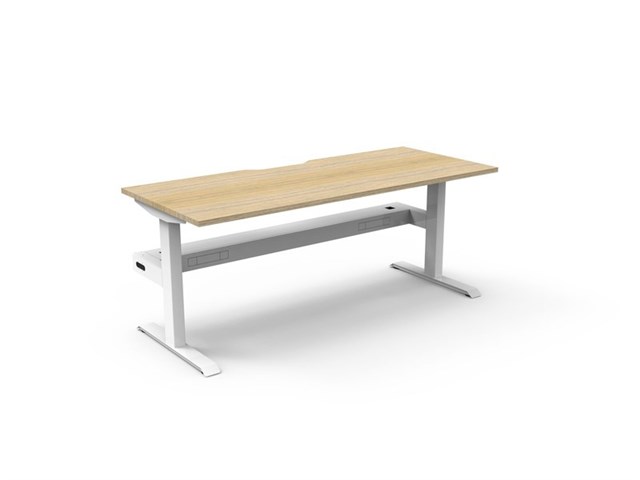 Boost Static Single Sided Workstation With Cable Tray - Natural Oak/ White Satin 1500mm W x 750mm D x 730mm H E0 Rated 25mm T Table Top Finished In Natural Oak With Rigid Edging & 50mm D Scallop Cut Out To Rear Underframe Finished In White Satin Powder Coat Fully Ducted Cable Tray With Punchout For Power & Data To be Fitted To Either External Or Internal Of Frame Column Size: 90mm x 60mm Frame Height: 705mm ( Without Table Top ) Adjustable Leveling Feet Foot Size: 700mm Desk Mounting Top Plate Size: 500mm Steel Gauge: 3.0mm, 2.0mm & 1.5mm Used Throughout Additional Items Also Available Include: 30mm T Pinnable Privacy Screen ( SHS159 + B2-SSARM + B2-SBRAC ) Cable Tray Bridge ( B2-SSBR ) Flexible Cable Snake ( B2-CBSNAKE ) 10 Year Warranty