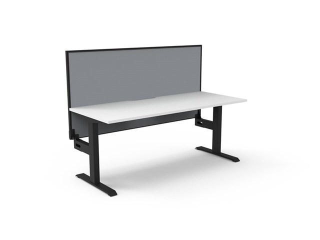 Boost Static Single Sided Workstation With Screen - Natural White/ Black Satin 1200mm W x 750mm D x 730mm H Overall Height AFFL including Screen: 1330mm H E0 Rated 25mm T Table Top Finished In Natural White With Rigid Edging & 50mm D Scallop Cut Out To Rear Underframe Finished In Black Satin Powder Coat 1200mm W x 900mm H x 30mm T Pinnable Privacy Screen Finished In Grey Fabric With Matching Black P/C Extrusion Column Size: 90mm x 60mm Frame Height: 705mm ( Without Table Top ) Adjustable Leveling Feet Foot Size: 700mm Desk Mounting Top Plate Size: 500mm Steel Gauge: 3.0mm, 2.0mm & 1.5mm Used Throughout Additional Items Also Available Include: Fully Ducted Cable Tray Complete With Power & Data Punchouts Internal & External To Tray ( B2-SSCT12 ) Cable Tray Bridge ( B2-SSBR ) Flexible Cable Snake ( B2-CBSNAKE ) 10 Year Warranty