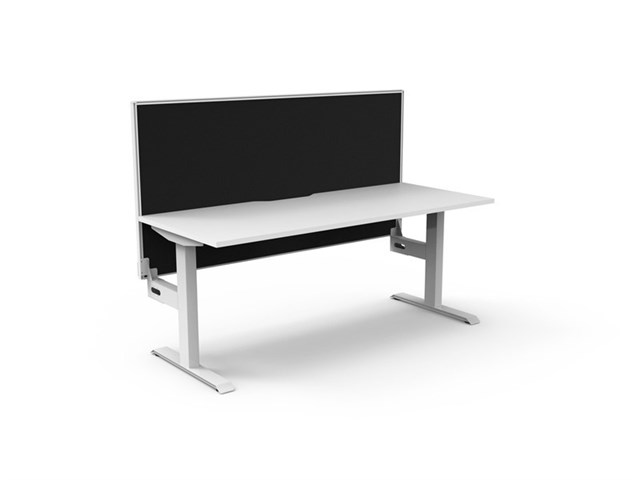 Boost Static Single Sided Workstation With Screen - Natural White/ White Satin 1800mm W x 750mm D x 730mm H Overall Height AFFL including Screen: 1330mm H E0 Rated 25mm T Table Top Finished In Natural White With Rigid Edging & 50mm D Scallop Cut Out To Rear Underframe Finished In White Satin Powder Coat 1800mm W x 900mm H x 30mm T Pinnable Privacy Screen Finished In Black Fabric With Matching White P/C Extrusion Column Size: 90mm x 60mm Frame Height: 705mm ( Without Table Top ) Adjustable Leveling Feet Foot Size: 700mm Desk Mounting Top Plate Size: 500mm Steel Gauge: 3.0mm, 2.0mm & 1.5mm Used Throughout Additional Items Also Available Include: Fully Ducted Cable Tray Complete With Power & Data Punchouts Internal & External To Tray ( B2-SSCT18 ) Cable Tray Bridge ( B2-SSBR ) Flexible Cable Snake ( B2-CBSNAKE ) 10 Year Warranty