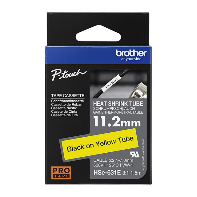 Brother HSe631E Labelling Tape Black on Yellow