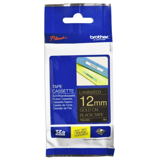 The Brother TZe-334 Gold on Black Tape is perfect for restocking your Brother TZe label maker