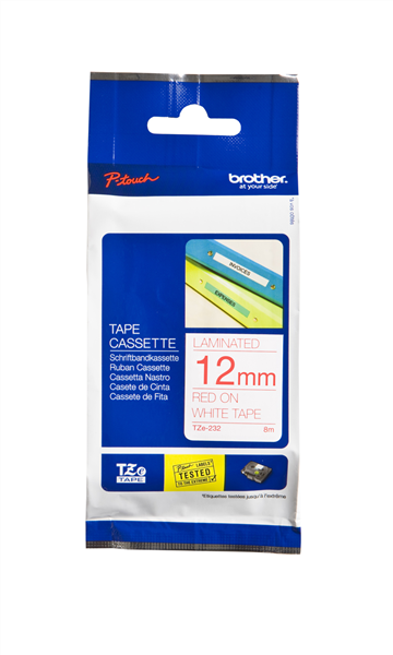 Brother TZ232 Labelling Tape 12mmx8m Red On White