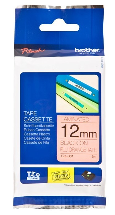 Brother TZB31 Labelling Tape 12mmx5m Black on Fluro Orange