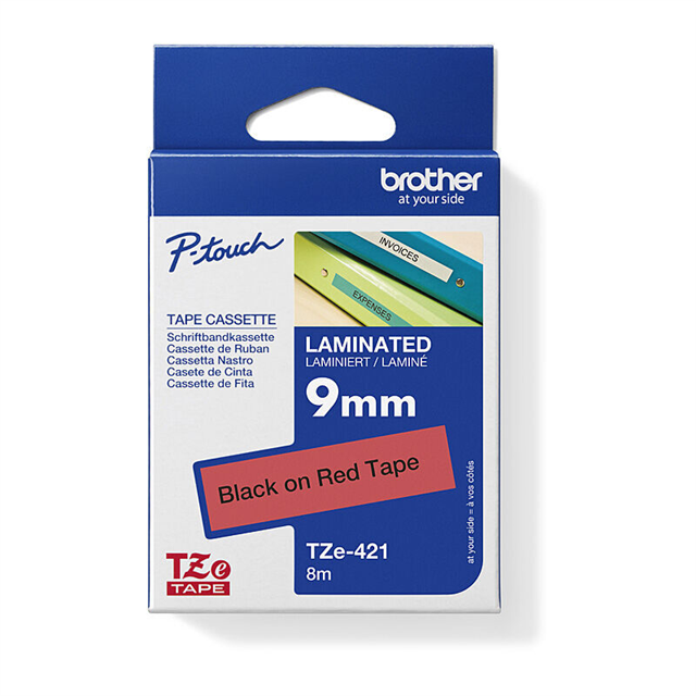 Brother TZe421 Labelling Tape 9mmx8m Black on Red