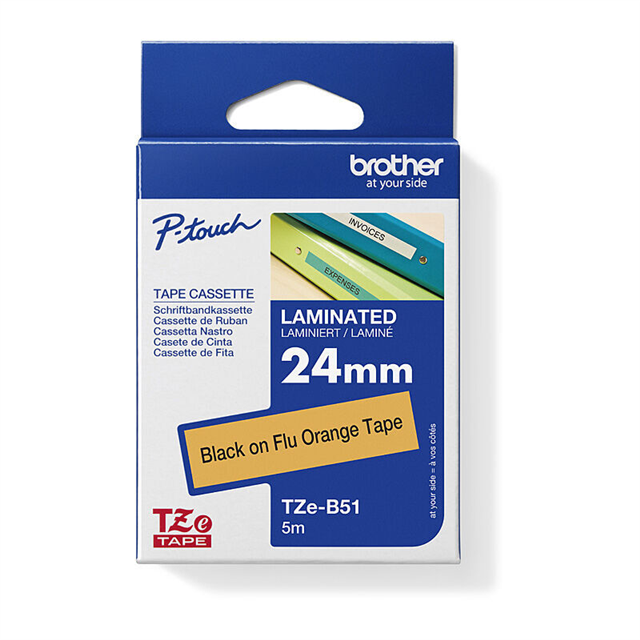 Brother TZeB51 Labelling Tape 24mmx8m Black on Fluro Orange Adelaide Direct Stationers