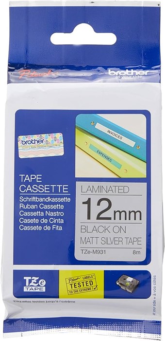Brother TZE-M931 Labelling Tape 12mmx8m Black on Silver Matt