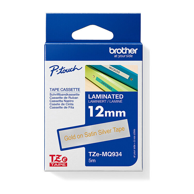 Brother TZeMQ934 Labelling Tape 12mmx5m Gold on Satin Silver