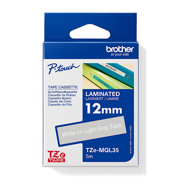Brother TZE-MQL35 White on Light Grey 12mm MatteTape