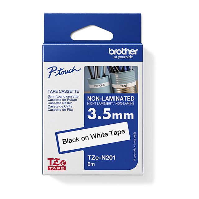 Brother TZeN201 Labelling Tape 3.5mmx8m Black on White Adelaide Direct Stationers