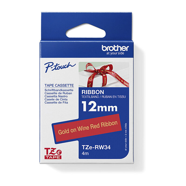 Brother TZeRW34 Labelling Tape 12mmx4m Gold on Wine Red