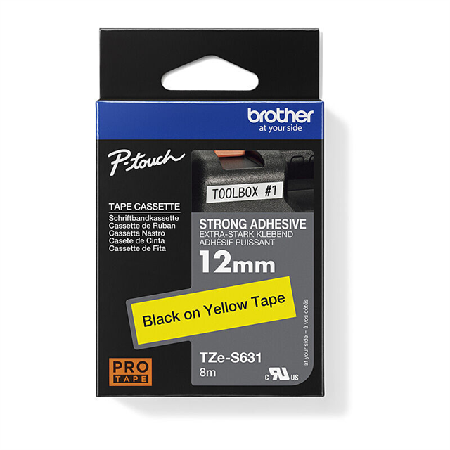 Brother TZeS631 Strong Adhesive Tape 12mm Black on Yellow