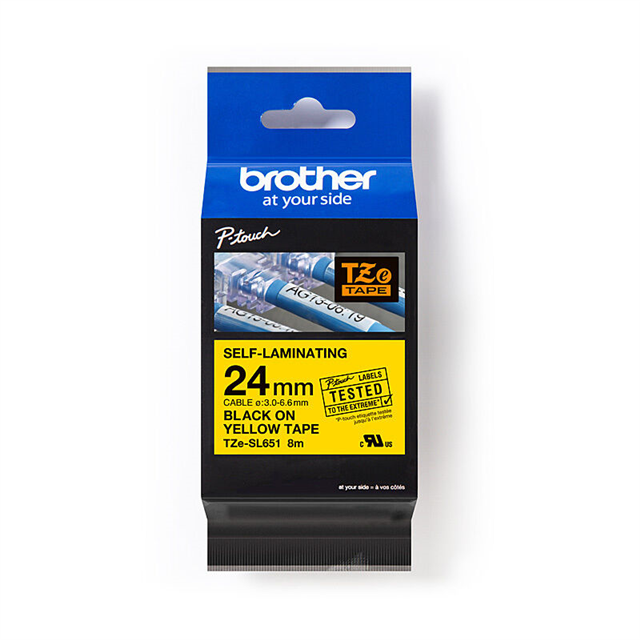 The Brother TZe-SL651 is a 24mm wide tape cassette providing Black text on a Yellow background