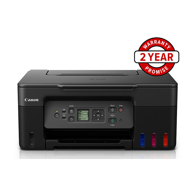 The Canon PIXMA G3670BK is a compact color inkjet multifunction printer offering Print, Copy, and Scan functions in a black finish