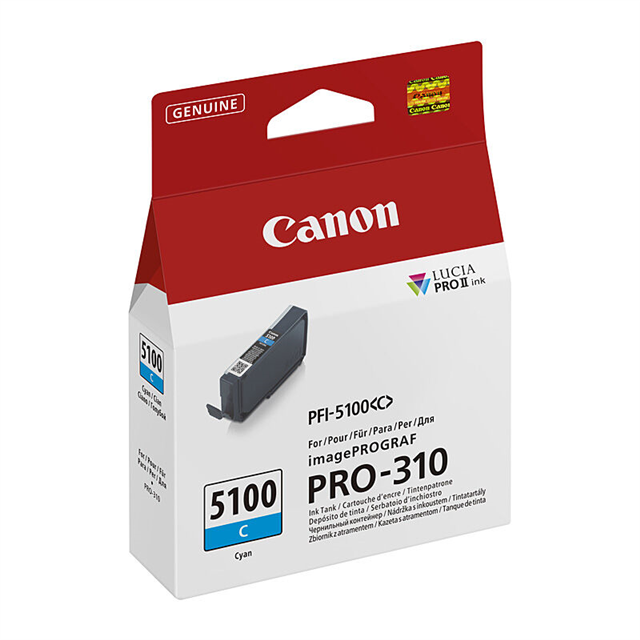 The Canon PFI-5100 Cyan Ink Cartridge delivers outstanding color accuracy and smooth gradients for photographs, graphics, and professional documents