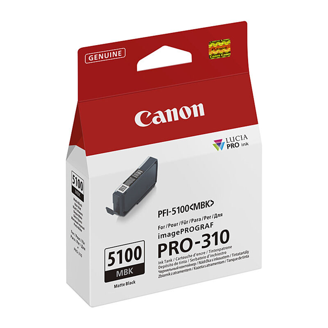 The Canon PFI-5100 Matte Black Ink Cartridge delivers rich, deep black tones with exceptional detail and smooth gradients
