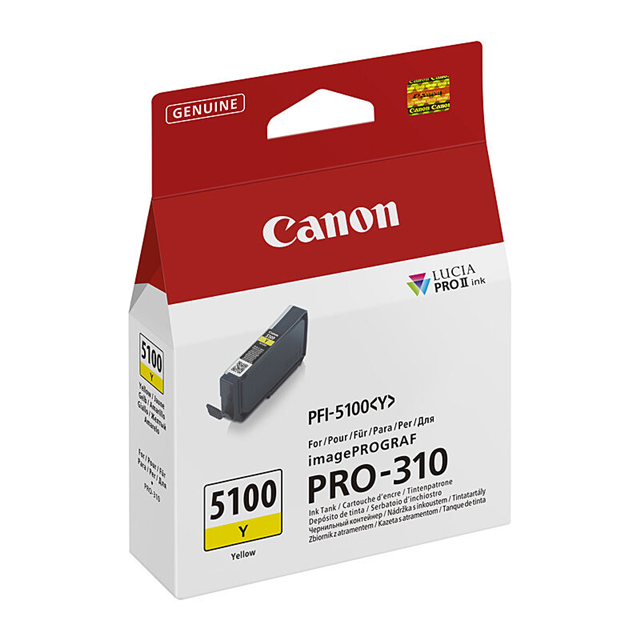 The Canon PFI-5100 Yellow Ink Cartridge delivers vivid and reliable color output for photos, graphics, and professional documents