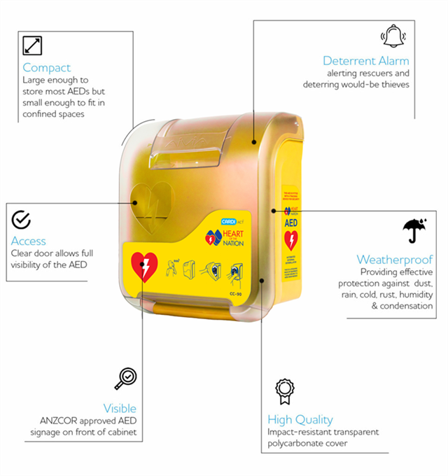 CARDIACT Alarmed AED Cabinet Yellow Adelaide Direct Stationers