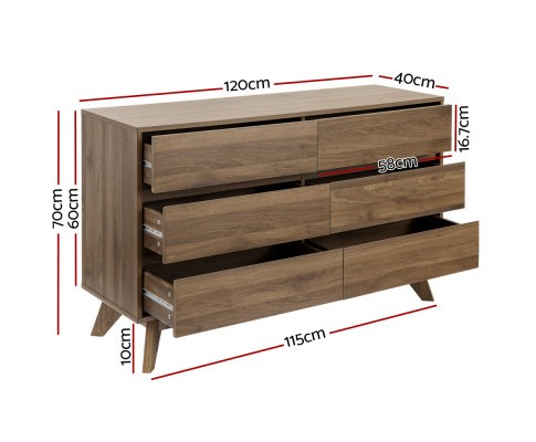 Chest of Drawers with six spacious drawers, each fitted with a smooth glide mechanism, it provides ample storage to keep your space organized and clutter-free