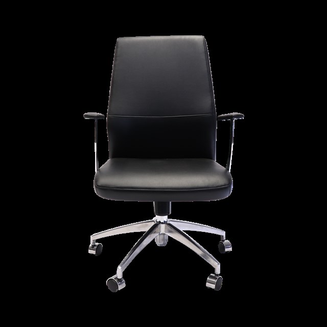 Rapidline Medium Back Slimline Executive Chair East To Adjust Seat & Back Tilt With 3-Position-Lock Mechanism With Anti-Shock Upholstered In Soft Commercial Grade Black PU Leather O/A Height - 1000mm - 1130mm O/A Width - 620mm O/A Depth - 555mm Back Height - 600mm Back Width - 490mm - 410mm Seat Height - 440mm - 560mm Seat Width - 505mm Seat Depth - 510mm Arm Height - 280mm Soft PU Armrest Pads With Stylish Radial Polished Aluminium Supports Polished Aluminium 5 Star Base 120kg Weight Rating 10 Year Warranty