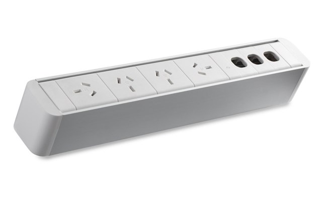 Zeus Power Rail - 4 GPO + 3 Data - White 4 x Rotated 10amp Auto Switched Socket Outlet & 3 x Provisions For Data Comes With 500mm Tag Lead & 3 Way Splitter 2 Year Warranty