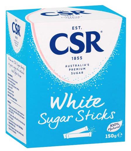 CSR White Sugar Sticks are portion controlled and handy to take on the go for sweetening beverages.