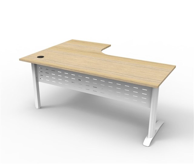 Rapid Span Corner Workstation - Natural Oak Top With White P/C Frame 1800mm x 1200mm x 750mm D x 730mm H Unique Span Leg - Matching Perforated Modesty Panel With Corner Leg 1 x 80mm Dia