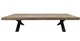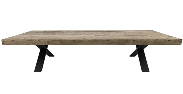 Flaunting an industrial style with a smoke finish table top paired with black steel legs in a cross design