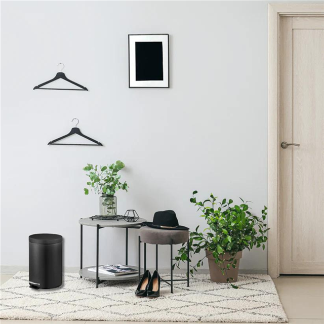 With its compact 5-liter capacity, it fits neatly into tight spaces while still accommodating everyday waste