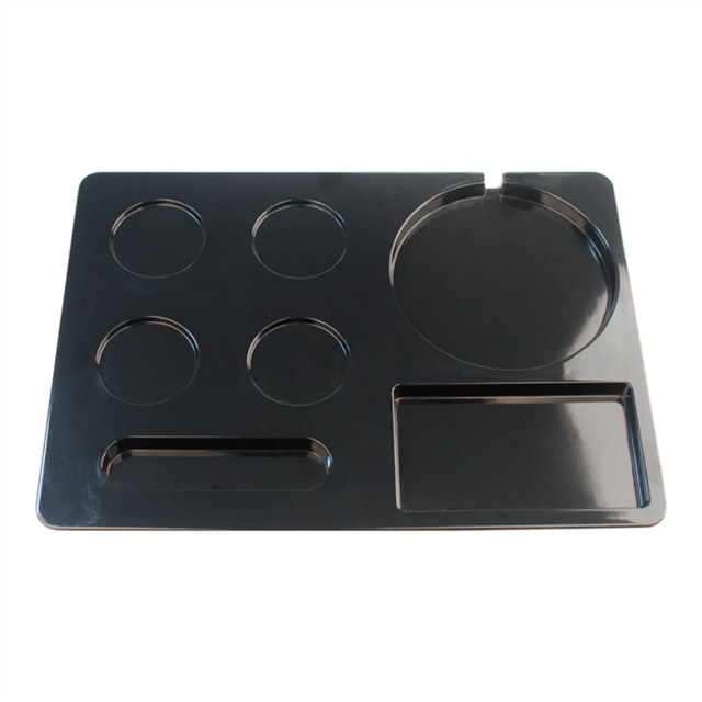 • Indentations for sachets, spoons, 2 bottles of water and 2 mugs