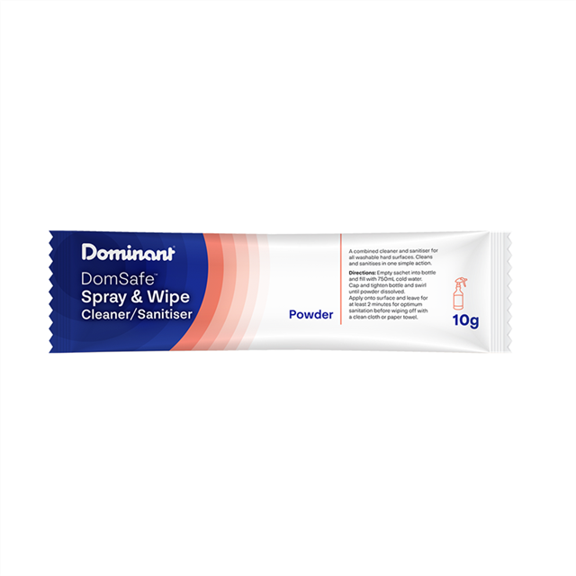 DomSafe™ Spray & Wipe Sanitiser 10g Sachet Carton (50x10g sachets)