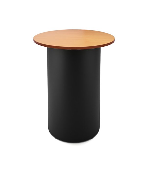 Drum Base Round High Bar Table - Beech/Black 900mm Dia x 1050mm H 25mm T Beech Table Top With Matching Edge Tape Drum Base Finished In Black P/C Underframe Dimensions: 600mm Dia x 1025mm H Adjustable Leveling Feet E0 Enviroboard 5 Year Warranty