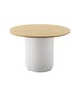 Drum Base Round Table - Natural Oak/White 1200mm Dia x 730mm H 25mm T Natural Oak Table Top With Matching Edge Tape Drum Base Finished In White P/C Underframe Dimensions: 600mm Dia x 705mm H Adjustable Leveling Feet E0 Enviroboard 5 Year Warranty