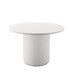 Drum Base Round Table - Natural White/White 1200mm Dia x 730mm H 25mm T Natural White Table Top With Matching Edge Tape Drum Base Finished In White P/C Underframe Dimensions: 600mm Dia x 705mm H Adjustable Leveling Feet E0 Enviroboard 5 Year Warranty