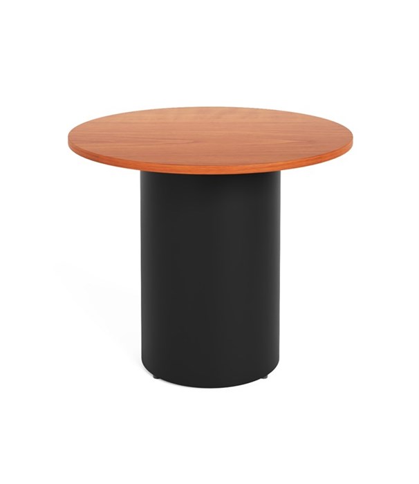 Drum Base Round Table - Cherry/Black 900mm Dia x 730mm H 25mm T Cherry Table Top With Matching Edge Tape Drum Base Finished In Black P/C Underframe Dimensions: 450mm Dia x 705mm H Adjustable Leveling Feet E0 Enviroboard 5 Year Warranty