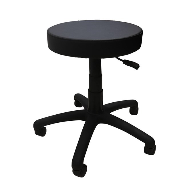 Data Stool - Black Desk Height 400mm Dia x 450-570mm Height Adjustment Black PU Leather Seat Pan 100kg Weight Rating Black 5 Star Base On Castors 3 Year Warranty